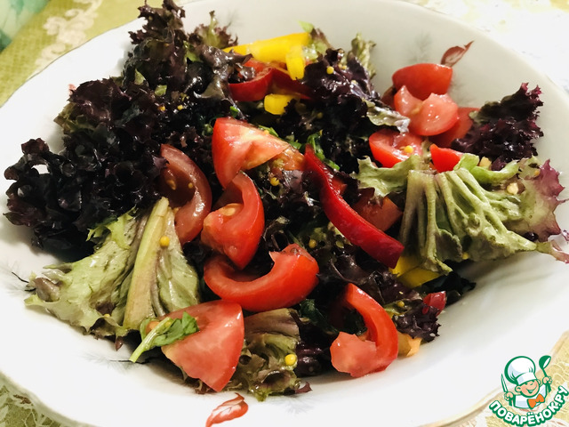 Перед тем, как салат подавать на стол, я порвала листовой салат руками и еще раз перемешала. Вот такая красота и вкуснота получилась.