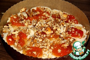 На хлеб выложить абрикосовое варенье и грецкие орехи.