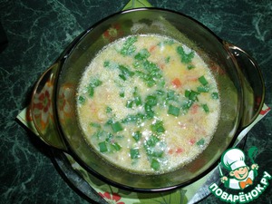 Разлить суп по тарелкам и посыпать порезанной зеленью.