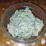 Ножом нарезала его на небольшие кусочки, немного подогрела до мягкости в микроволнове (меньше минуты), в блендер сложила сало, рубленую зелень, по щепотке разных трав и раздавила большой зубчик чеснока, приправив все солью. Взбила до однородной массы около 3 минут.