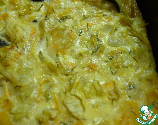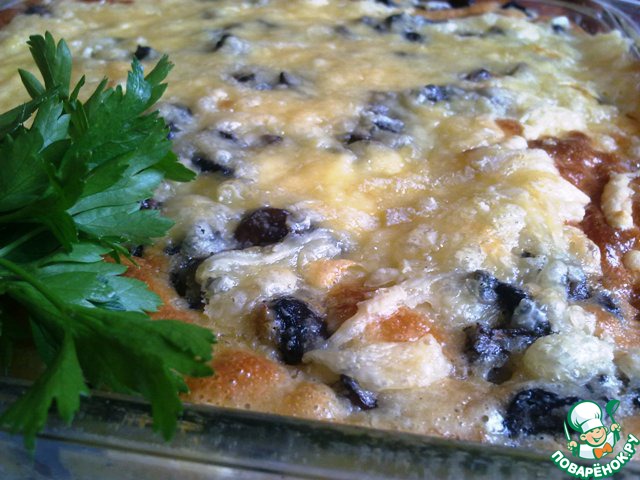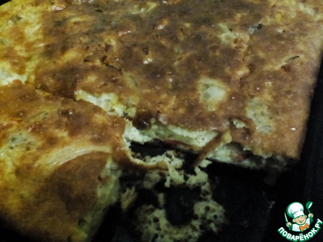 Очень люблю этот пирог, нежный и легкий, пористый, что-то среднее между пирогом и запеканкой. Подойдет и на каждый день, и как праздничная закуска. Источник - мамина подруга.