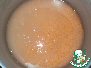 2⅛ (410 гр) стакана красной чечевицы залить холодной водой и пусть стоит часа 2, затем переменить воду