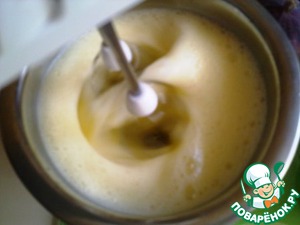 Добавляем молоко и сливки, опять взбиваем.