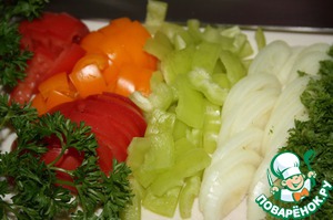 Лук порезать полукольцами и слегка помять, чтобы разделились листики. -