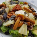 Сверху салат посыпать тыквеными семечками.