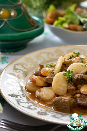О! Наконец-то можно полюбоваться твоим блюдом! Баранину мы любим, так что приготовлю как-нибудь. А я тоже подобное блюдо не так давно видела, только с украинской кухни и с красной фасолью.