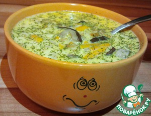100 г сыра Филадельфии + 150 мл воды размешать блендером и влить в супчик. Посолить по вкусу, поперчить и еще мин. 5 проварить все вместе.