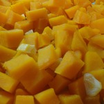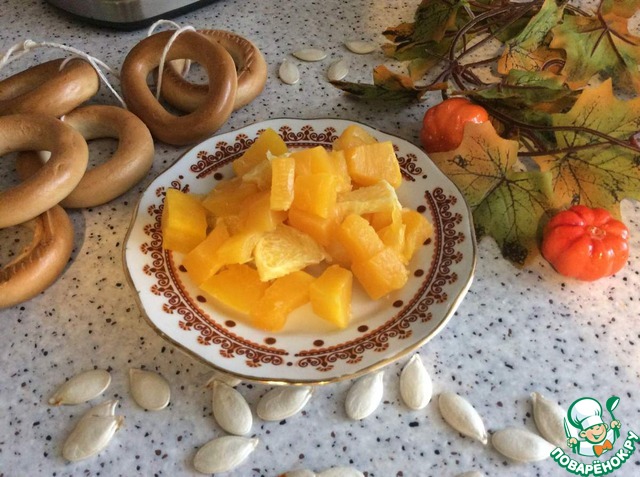 Тыкву чистим от шкурки, семечек, режем кубиками около 2 см.