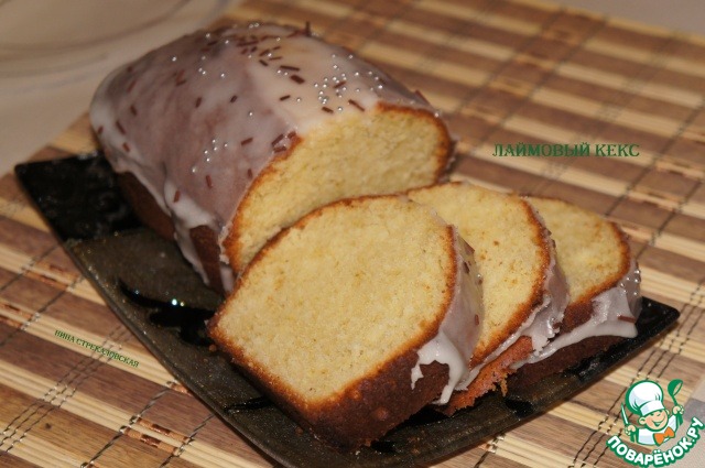 Готовый кекс покрываем лаймовой глазурью: берем сок от одного лайма, смешиваем с сахарной пудрой до однородности. Масса должна быть густой и не течь с ложки (у меня получилась жидковата немного).