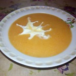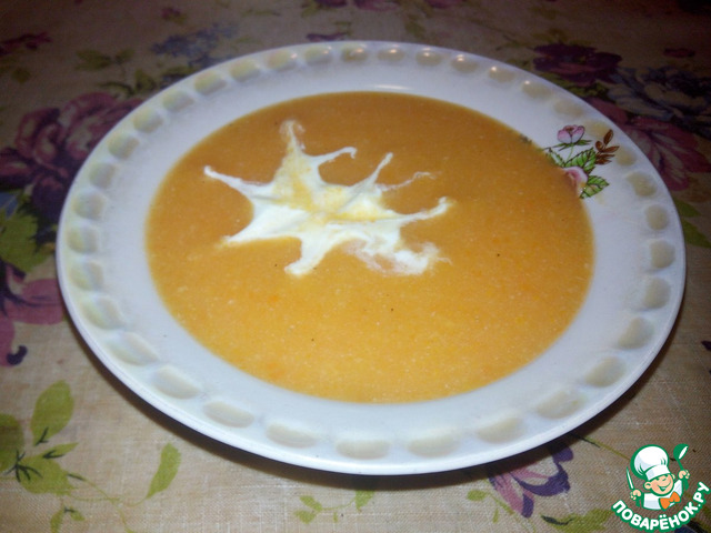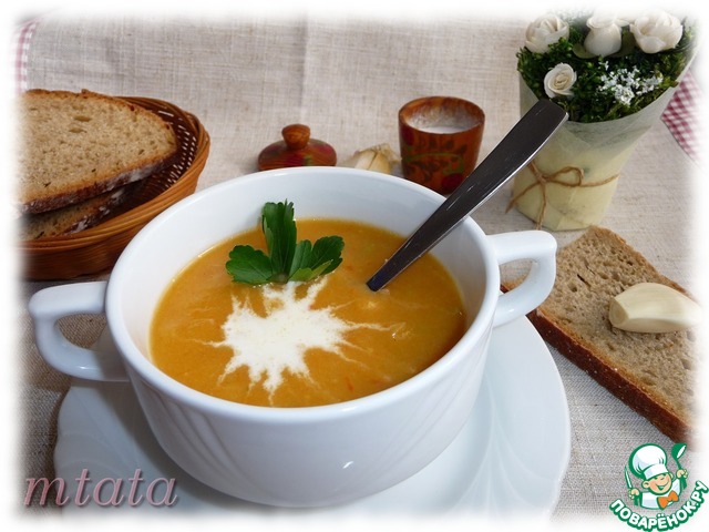 Подавать можно с сухариками или просто так. Суп очень приятный на вкус (я обычно готовлю просто овощной, без мяса и сливок), бархатистый, сытный, но не тяжелый.