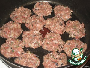 Из фарша сформировать лепешки, размером с сушку, выложить на противень.