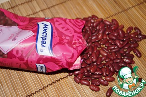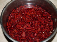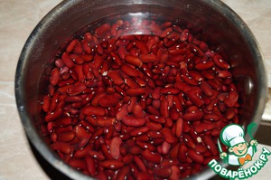 Фасоль замочить на ночь приблизительно в 600 мл холодной воды. Накрыть кастрюлю крышкой и варить на слабом огне в течение 1 часа. После чего слить с отваренной фасоли оставшуюся воду. |