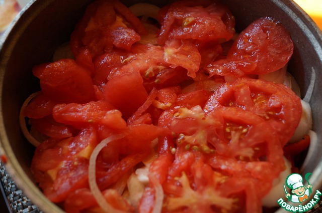 Накрываем кастрюлю крышкой и ставим её в нагретую до 170-180 градусов духовку на полтора часа. Перед подачей хорошо перемешиваем. |