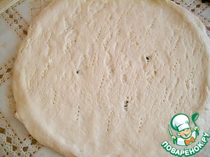 В смазанную форму кладем половину имеющегося у вас теста. Накалываем его вилкой.