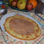 Быстренько посыпаем омлет сахарно-коричной смесью, наливаем ароматный чай (кофе). Прекраснейшее утреннее настроение гарантировано!