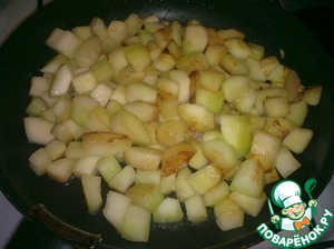 Кабачок очистим от кожуры, удалим семена и порежем кубиками. Обжарим на сковородке до полуготовности.