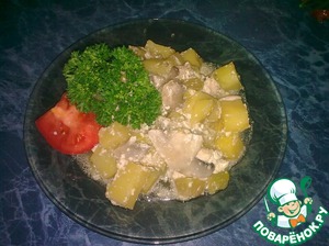 Очень нежная куриная грудка, приготовленная в рукаве вместе с кабачками, картошкой и грибочками. Ммм... вкусно...