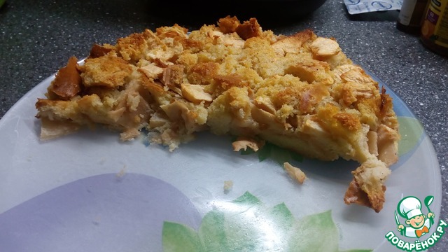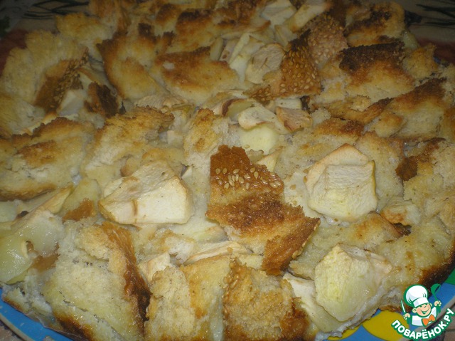 На яблоки укладываем весь хлеб. Можно просто их перемешать - хлеб и яблоки
