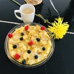 Можно подать пудинг с ягодами по сезону. А если к горячему ароматному кусочку у вас найдется пломбир... ммммм!