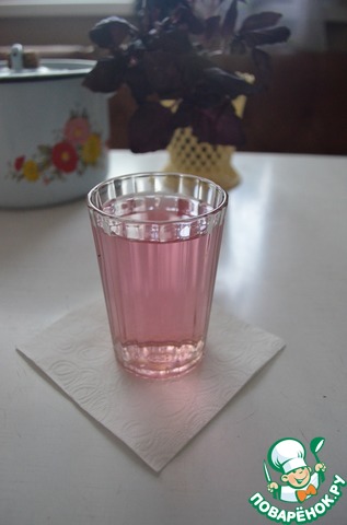 Цвет его зависит от базилика, как много Вы его кладете и на сколько листья темные. Сахар и лимон.кислоту до валяйте по Вашему вкусу.