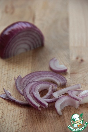 Лук нарезать полукольцами. Я брала красный, это не обязательно, просто мне он очень нравится :blush: