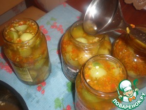 Маринад: воду, соль, сахар, уксус кипятим и добавляем в него эту смесь.