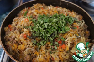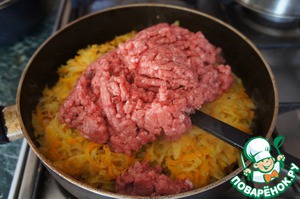 Добавить фарш, жарить все вместе 10 минут,