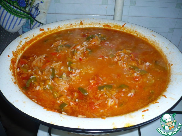 Затем добавить в овощи заранее отваренный рис и тушить еще 10 минут.