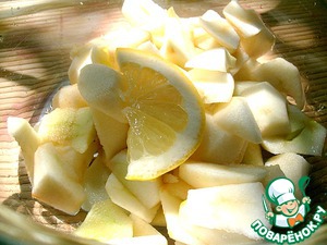Яблочки очищаем, нарезаем ломтиками, сбрызгиваем лимонным соком от потемнения.