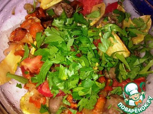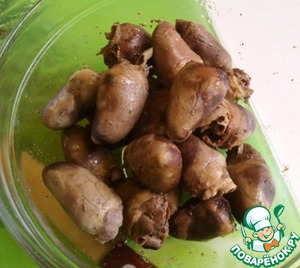 Рецепт «Теплый салат с куриными сердечками и овощами»: