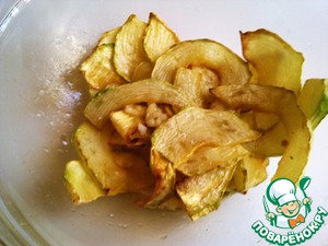 Обжариваем до золотистого цвета цуккини, не солим!!!