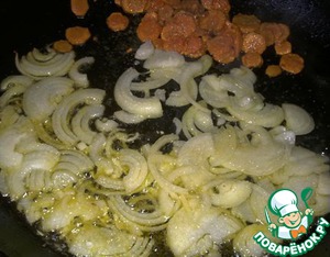 И карамелизируем морковь и лук, слегка присолив и посыпав сахаром.