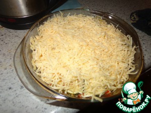 Когда запеканка уже практически готова, достаем, посыпаем сыром и снова отправляем в духовку минут на 10-15.