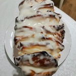 Тесто смазываем растопленным сливочным маслом, а затем начинкой.