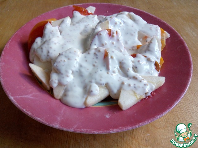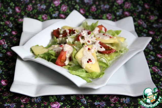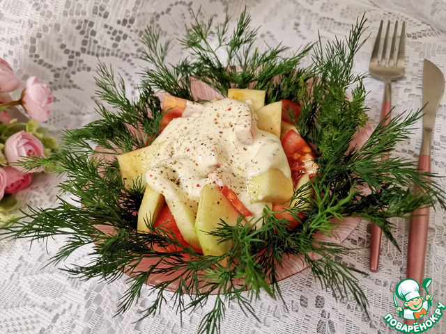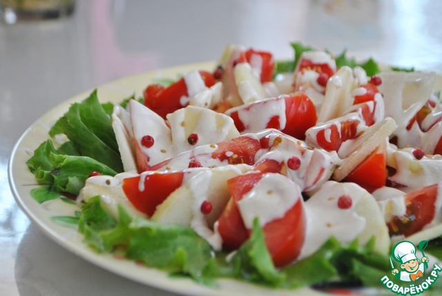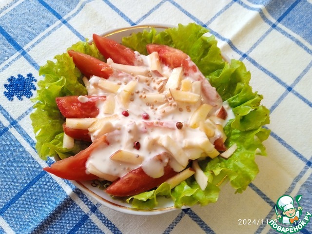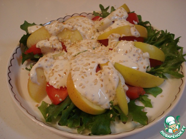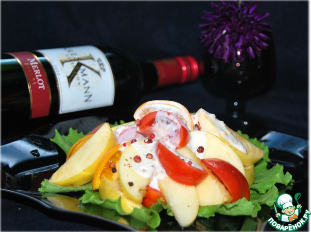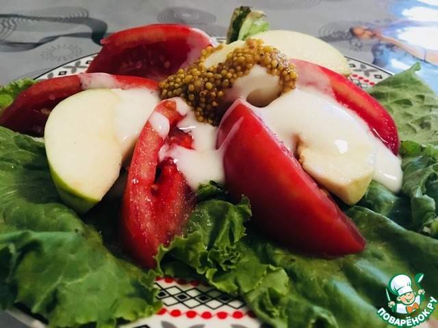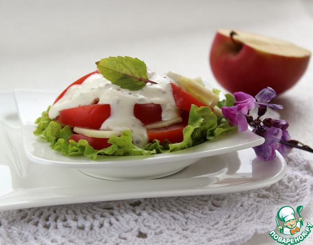 Рецепт «Салат с помидорами и яблоками в сметанной заливке»: