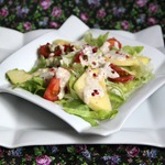 Сразу же салат и подаем. Свежо, интересно, гармонично.
