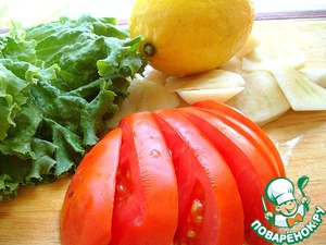Моем продукты, томаты нарезаем ломтиками, очищаем яблочки, их режем некрупными кусочками.