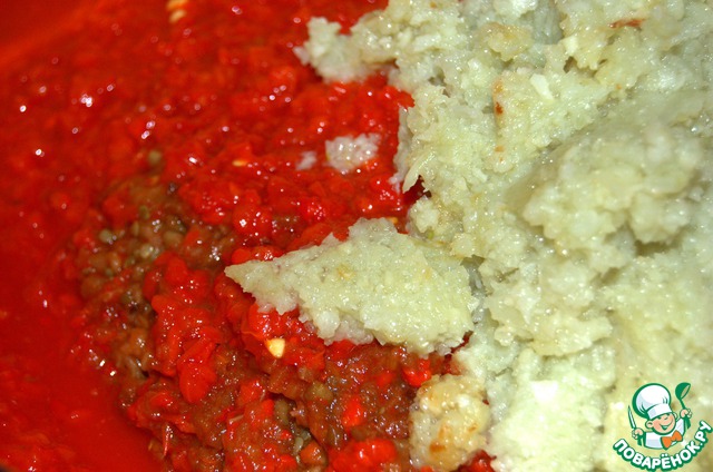 [+5]Я только сократила количество масла, а именно, использовала масло лишь для обжарки лука и чеснока. Остальное масло просто не добавляла, посчитала лишним. И ещё момент. Поскольку овощи уже запечёные, то тушить их после этого ещё 1,5 часа не стала, проварила 10 минут и закатала в банки. Предварительно, правда, сложила в дуршлаг, чтобы стекла лишняя жидкость с перца. Если делать "на сейчас", то закуске надо дать настояться хотя бы сутки в холодильнике, тогда вкус богаче становится. В интернете также читала, что раньше для айвара овощи запекали на углях, поэтому для лёгкого аромата дымка добавила чуточку копчёной паприки. Она сюда оказалась очень кстати.