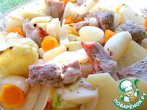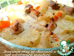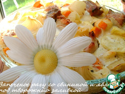 Запеченое рагу со свининой и яблоком под творожной заливкой