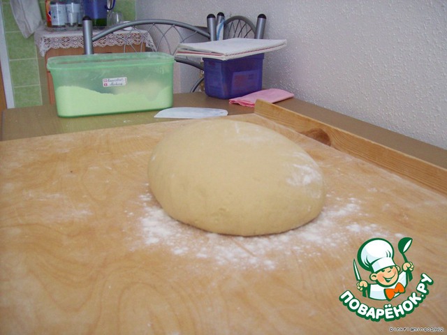 Муку просеиваем и замешиваем тесто, как я уже указала в рецептуре - в оригинале указано 1 кг муки, но этого мало, у меня уходит 1200 г. Тесто должно быть плотным, чтобы раскатывать, но не твёрдым. Тесто вымешиваем и, накрыв чашкой, оставляем минут на 30 "отдохнуть".
