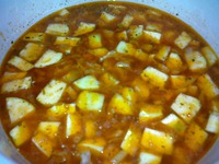 Cтавим кастрюлю на огонь, вливаем бульон, чтобы только покрыть овощи, и варим около 40-45 мин. на среднем огне, после того добавляем фасоль и варим еще 15 мин. |