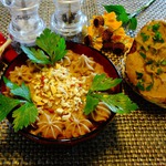 В принципе любой зеленью, но без кинзы пропадёт шарм блюда)