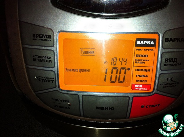 Переключаем на режим "тушение", устанавливаем время 1 час.