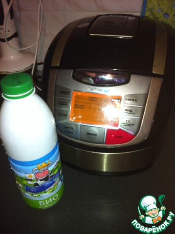 Возьмите любой кефир, вылейте в чашу мультиварки. С одного литра кефира получается около 250 гр. творога.