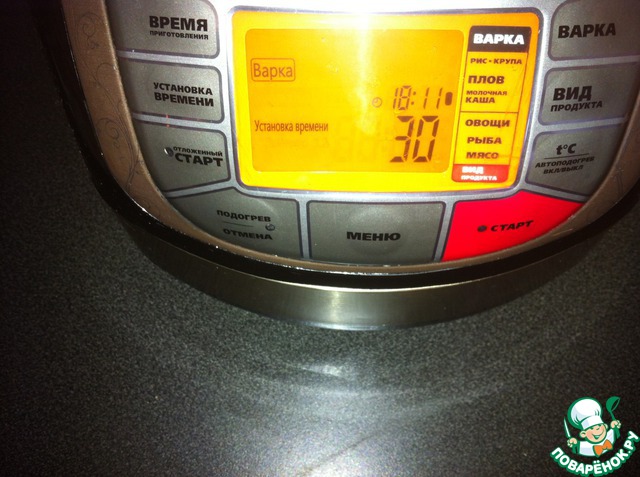 Установите режим "варка", вид продукта - "молочная каша", время приготовления - 30 мин.