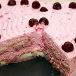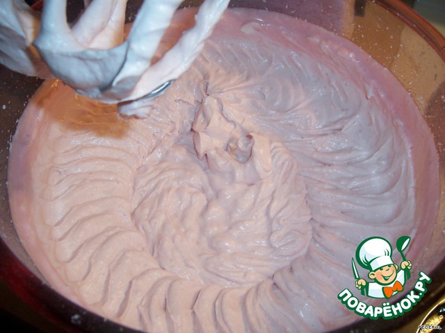 Сливки взбить со 100гр. сахара. Клубнику и крим-чиз с сахаром в блендере измельчить. Потом добавить к взбитым сливкам и ещё раз взбить, уменьшив скорость, всыпать загуститель и взбить ещё. |