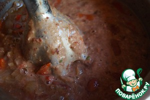 Если получается густовато, разбавляем овощным бульоном до нужной вам консистенции. Взбиваем ещё раз.