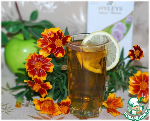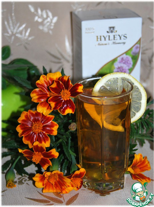 Берём удобный высокий стакан (бокал), украшаем долькой лимона.