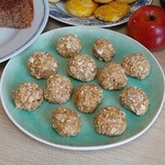 1) Oвсянку я слегка взбила миксером, чтобы хлопья были помельче, хотя "хозяйка" рецепта так не делала. Немного овсянки отложить для обваливания конфеток (в эту часть можно добавить корицу, кокосовую стружку).