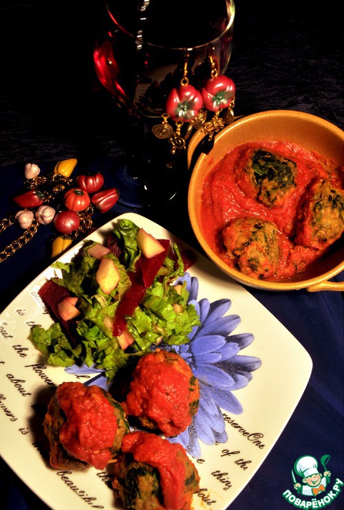 Фрикадельки из чечевицы и шпината в томатном соусе
